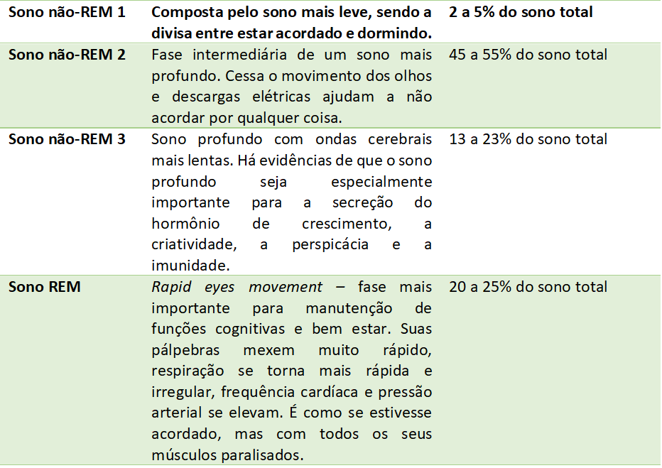 Resumidamente, o sono possui quatro etapas, sendo elas: